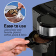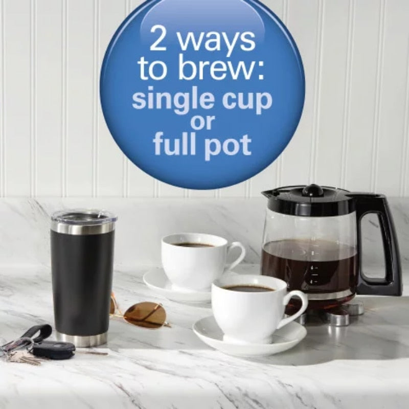 - VERSATILE: This versatile coffee maker can brew up to 14 oz. of coffee. Scoop, place, and brew your favorite ground coffee into a cup or travel mug.