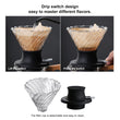- ADJUSTABLE: The adjustable drip filter cup's soul is in the base, equipped with a steel ball and an on-off valve. The steel ball at the bottom effectively blocks the water flow, allowing the coffee to be thoroughly soaked and extracted.