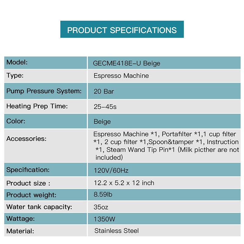 LOW-PRESSURE PRE-INFUSION: To obtain a more robust espresso, the low-pressure prepreg gradually increases the pressure and releases a small amount of water into the mashed coffee powder before a steady flow of water.