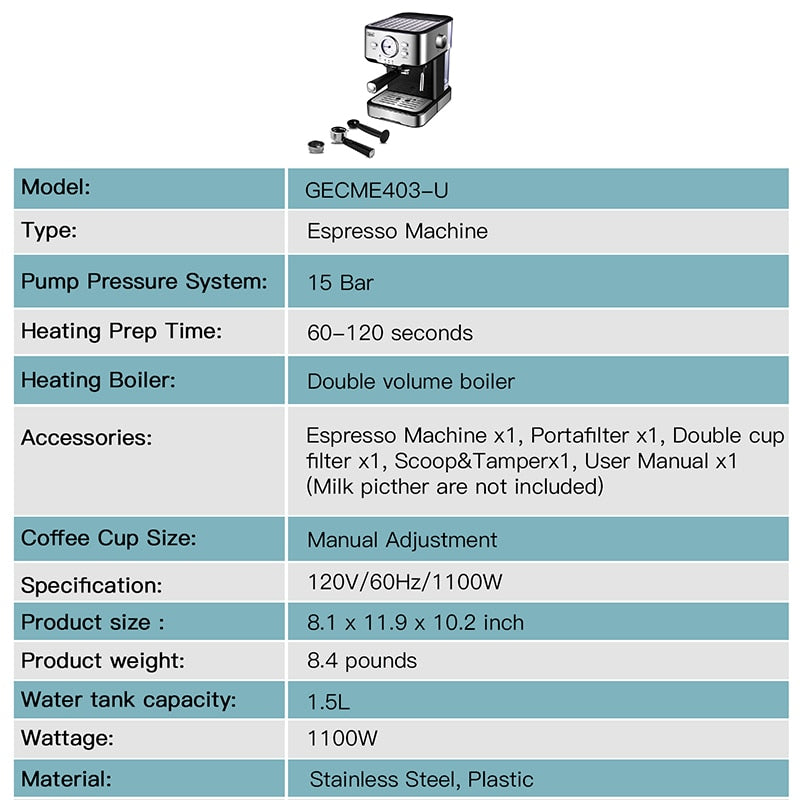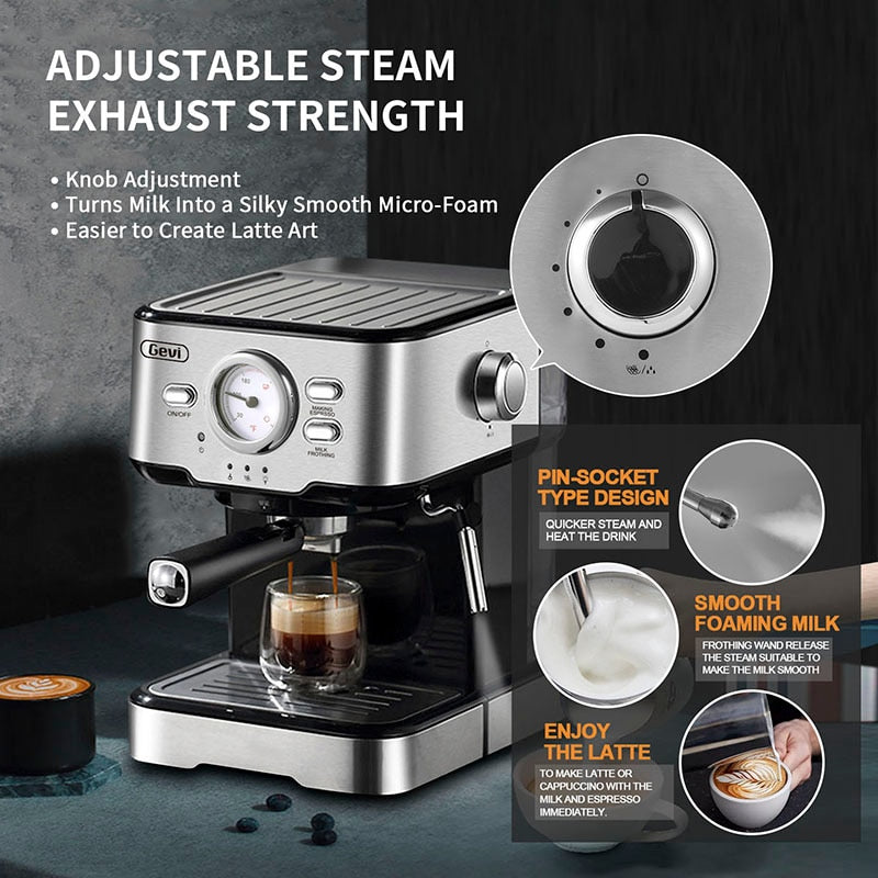 DURABLE AND SAFE: The Semi-automatic Espresso Machine is constructed of high-quality stainless steel that is durable and easy to clean. It has a long service life.