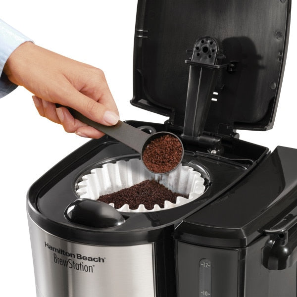 BREWS UP TO 12 CUPS: Make coffee the way you've always done - the Brew Station functions similarly to an automatic drip coffee maker. Fill a standard filter halfway with water and add the ground coffee. Instead of brewing in a carafe, the coffee is brewed in a removable internal tank.