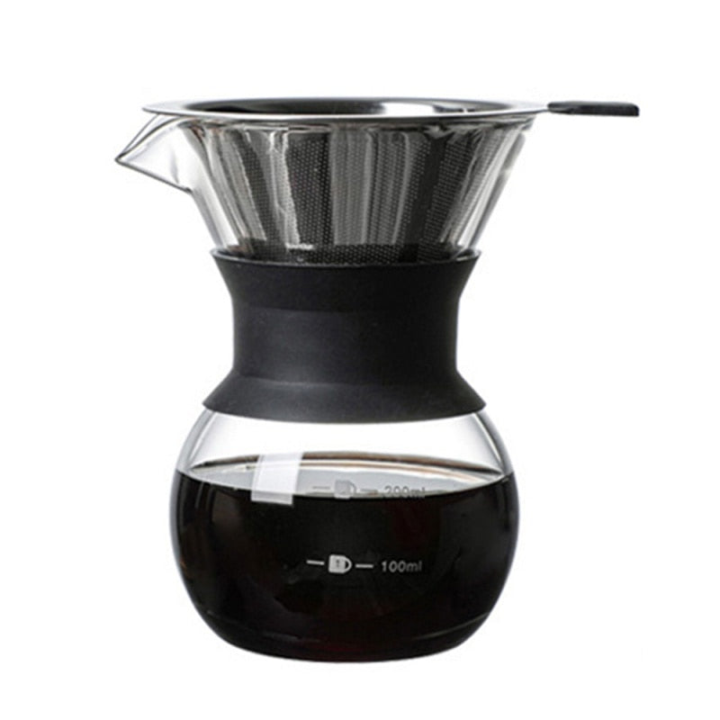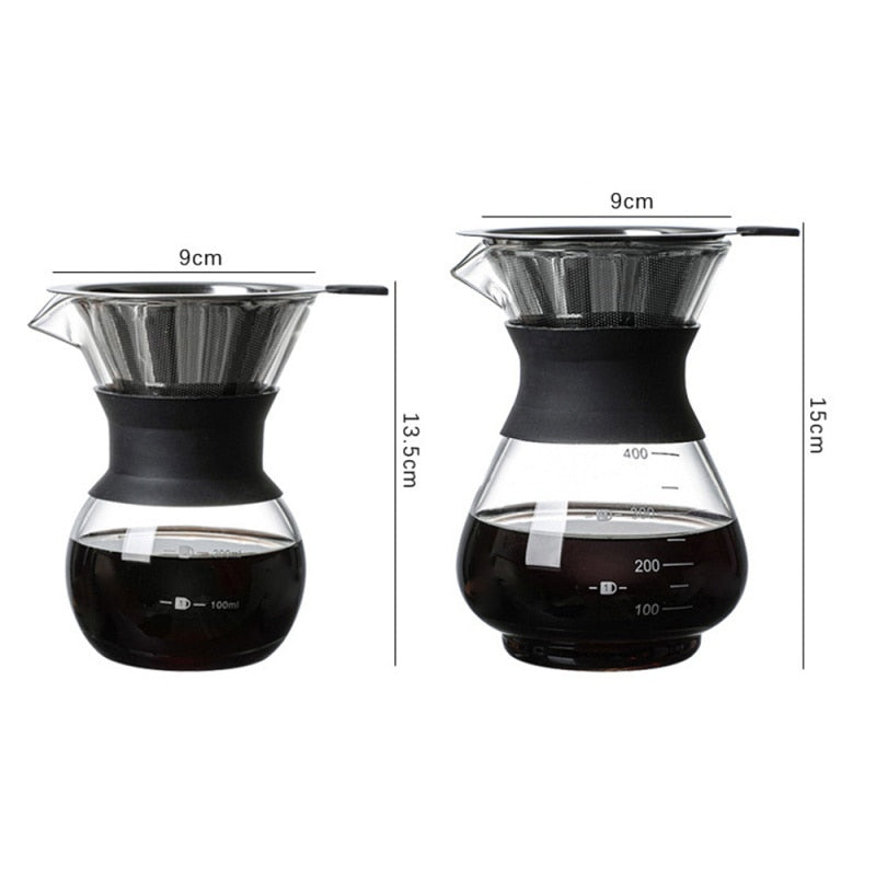 Pour Over Coffee Maker with Borosilicate Glass and Reusable Filter